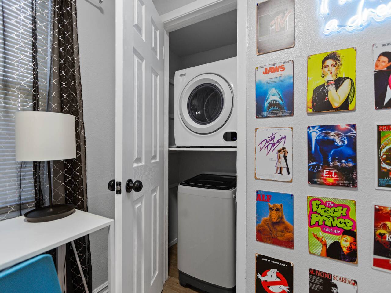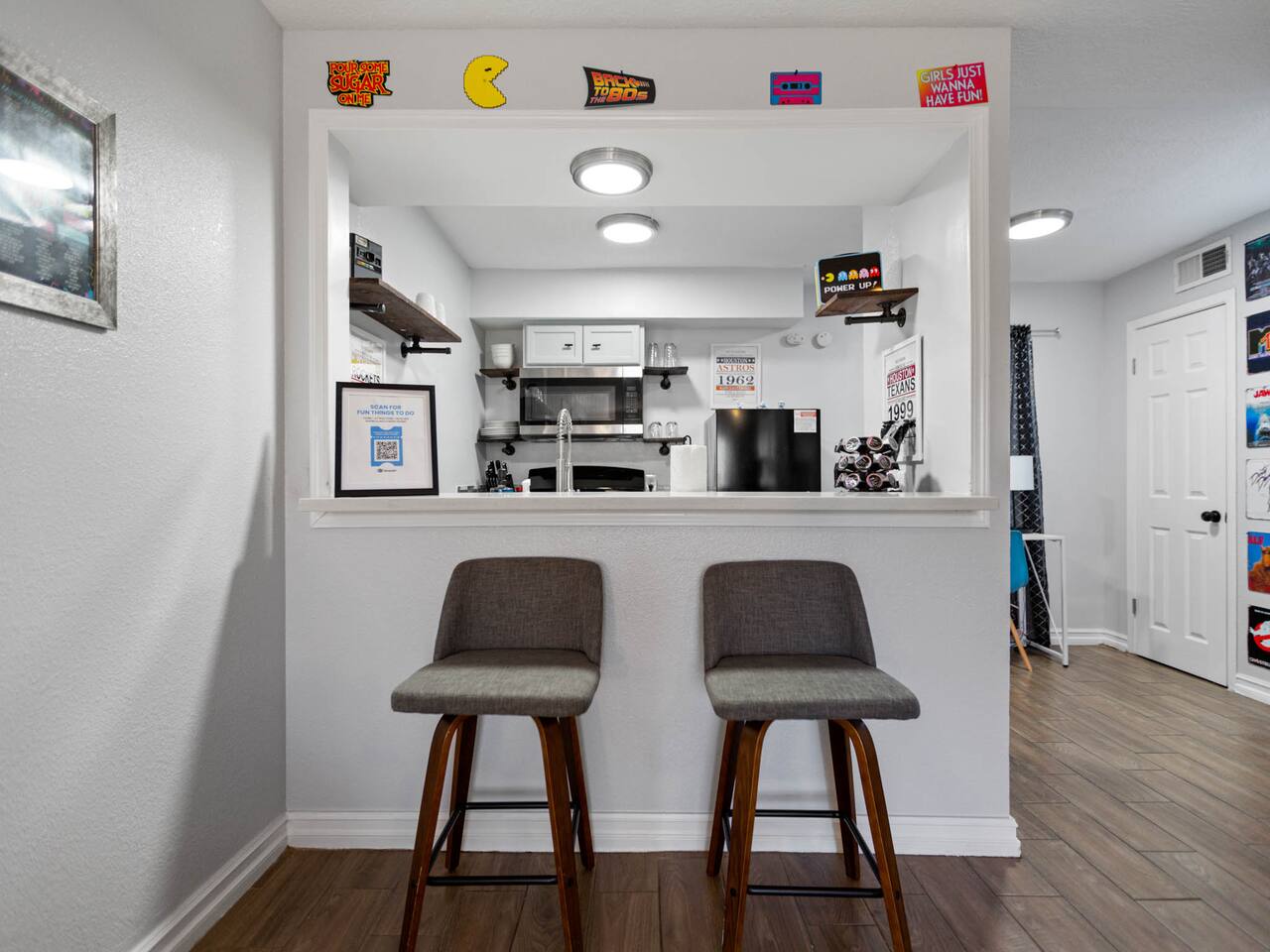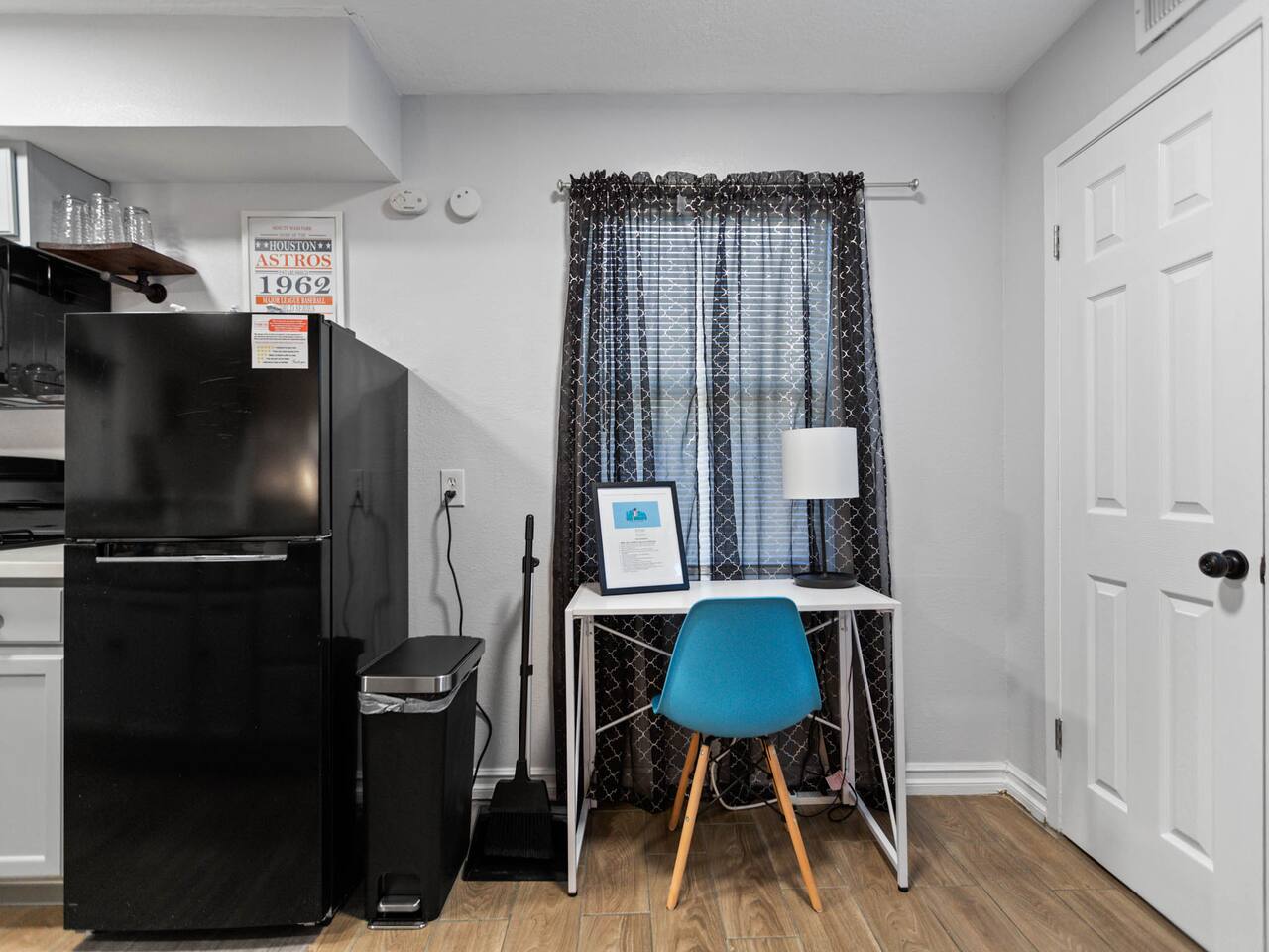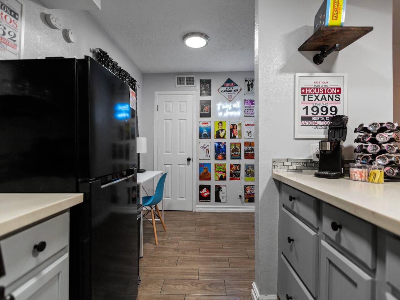 Discover our modern downtown Houston-themed unit with city-inspired decor, a comfy bedroom, a well-equipped kitchen, and a smart TV in the cozy living room. Plus, we've added a compact washer and dryer for your convenience. Enjoy easy access to Houston's dining and entertainment. Book your stay today! Our building has 8 unique rooms, each with its own charm. Monthly work-from-home options are available. Work from Home! Monthly! Afrotech Conference near NRG, Airport, TSU, UH