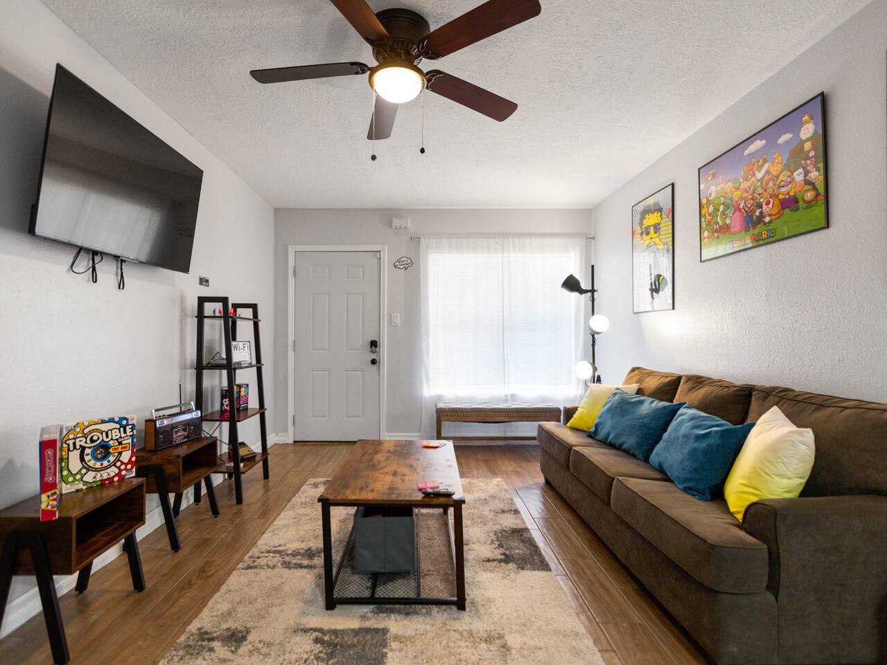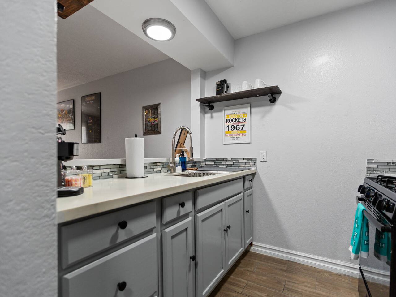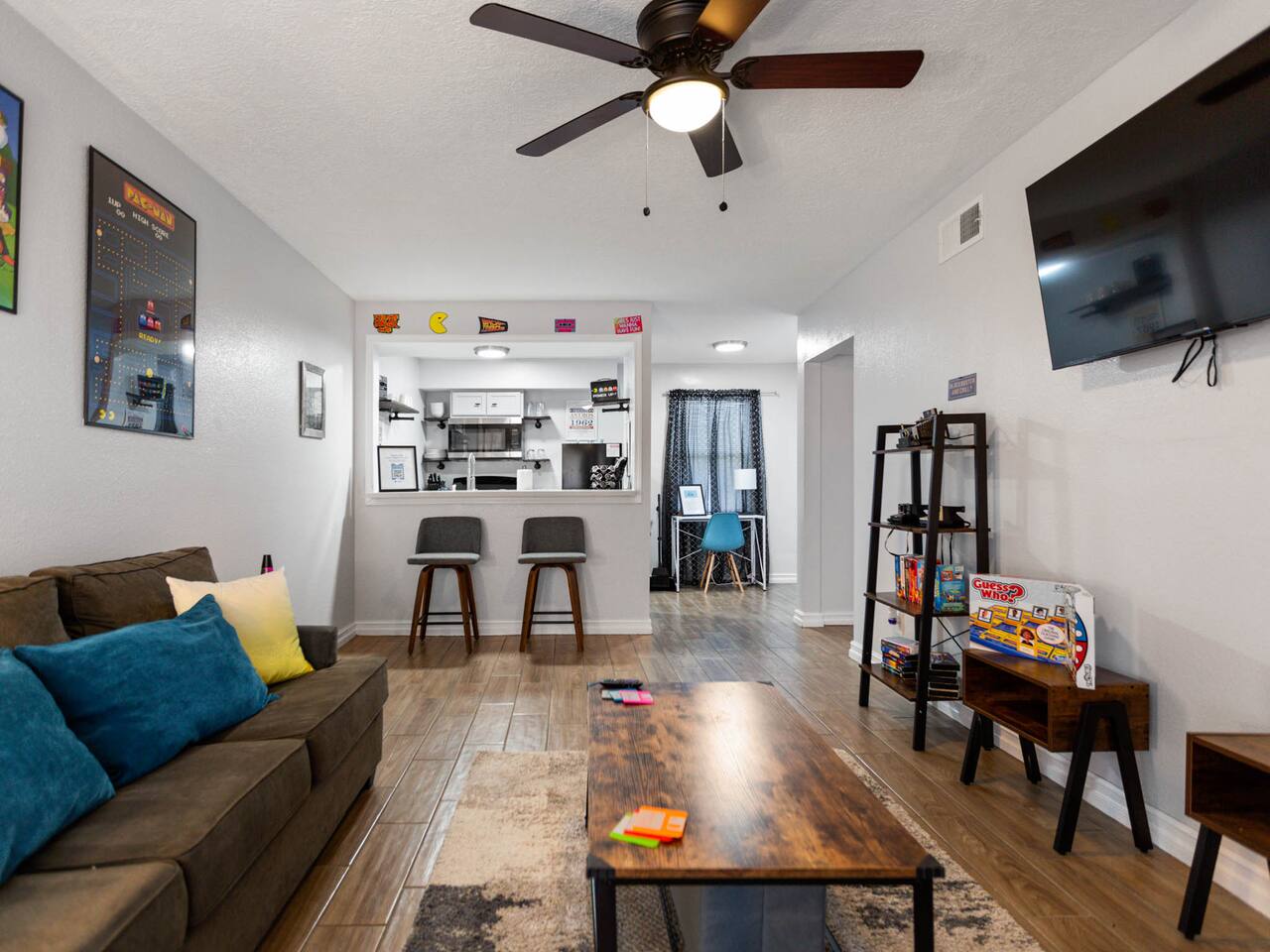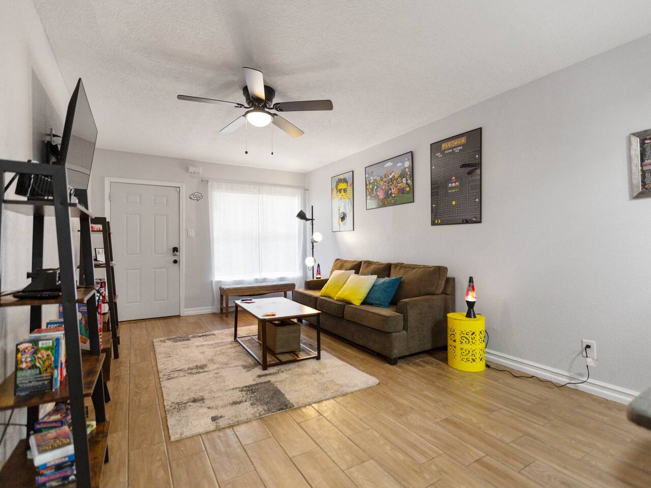 Discover our modern downtown Houston-themed unit with city-inspired decor, a comfy bedroom, a well-equipped kitchen, and a smart TV in the cozy living room. Plus, we've added a compact washer and dryer for your convenience. Enjoy easy access to Houston's dining and entertainment. Book your stay today! Our building has 8 unique rooms, each with its own charm. Monthly work-from-home options are available. Work from Home! Monthly! Afrotech Conference near NRG, Airport, TSU, UH