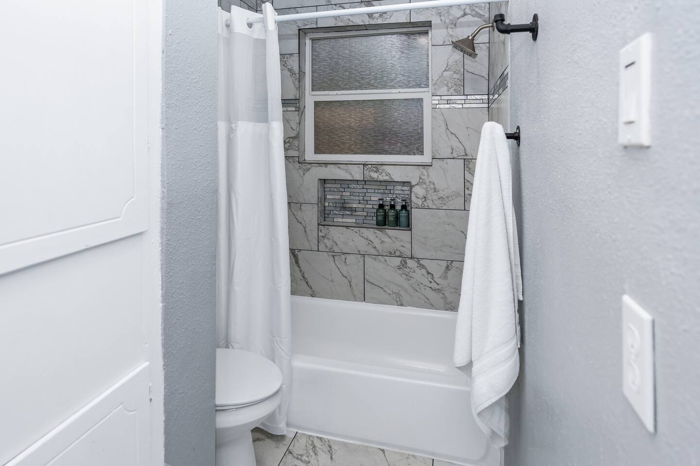 Our home is equipped with smart locks, a camera doorbell, a smart thermostat, and a home security system for efficiency and support. Note: It is in an urban area.