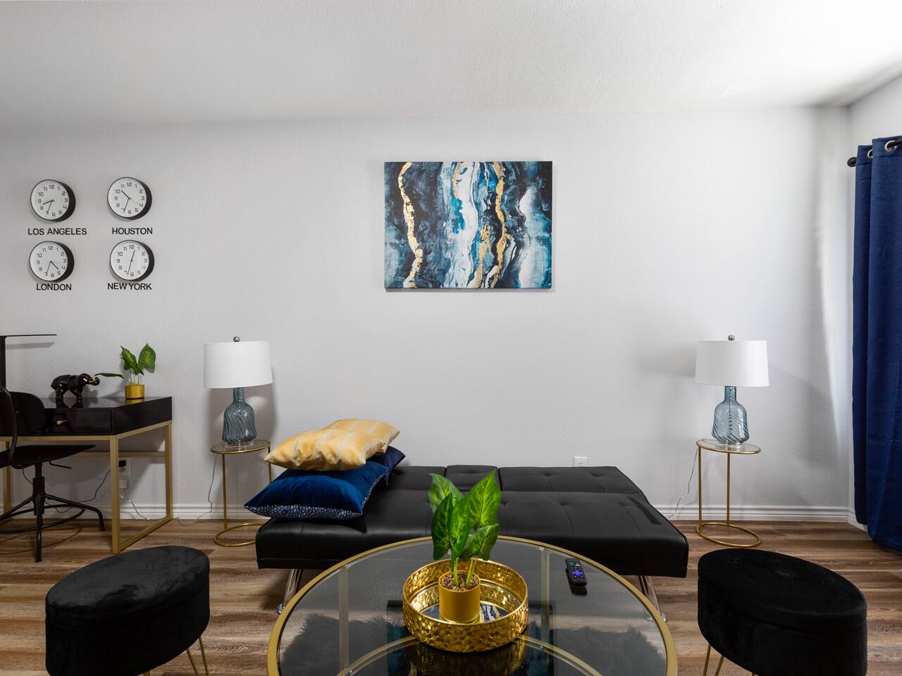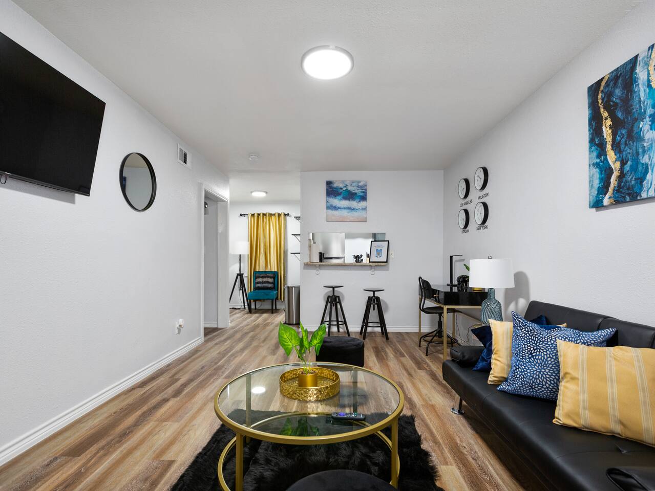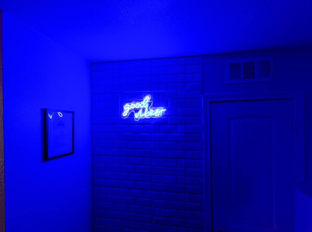 Elevate your stay with the Golden Vibes accommodation at The Escape, a sophisticated boutique hotel located in Houston. This room presents a fashionable retreat, featuring a trendy Selfie wall that's designed to create a star-like experience. Whether you're on a solo trip, traveling with a companion, or visiting for business or leisure, the Golden Vibes unit offers the perfect setting for unwinding and recharging. Work from Home! Monthly deals available