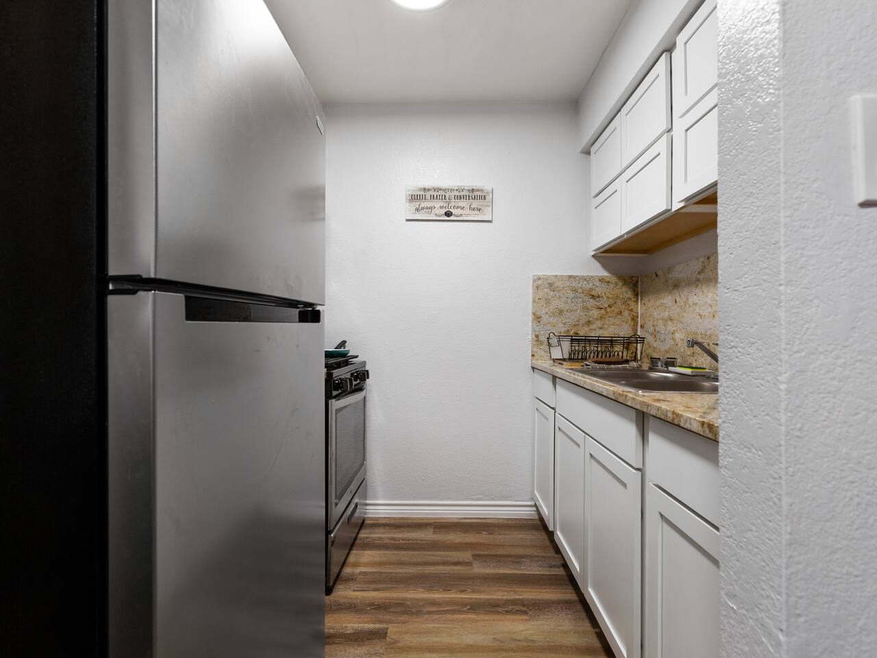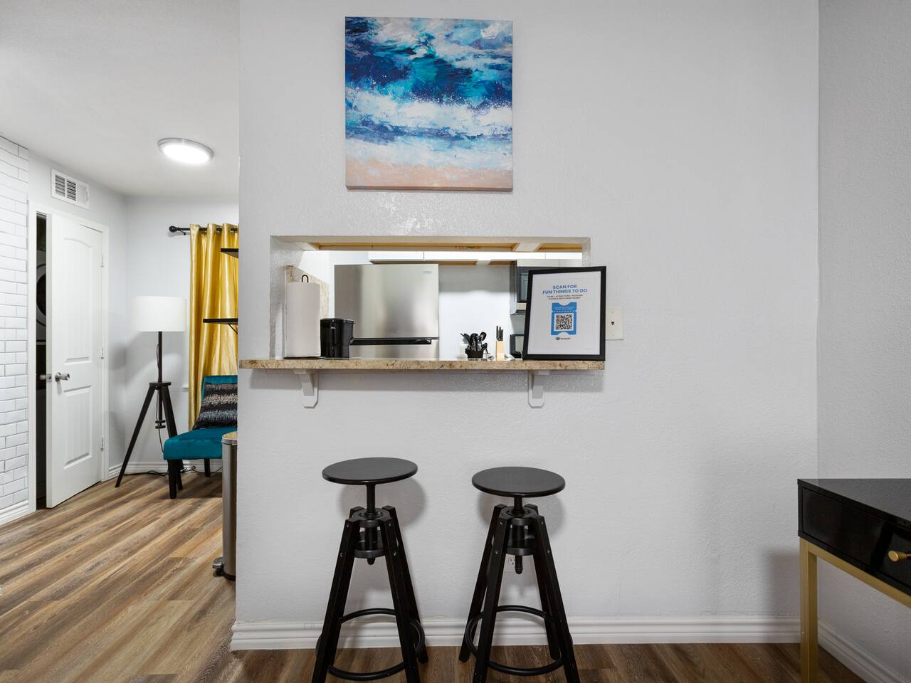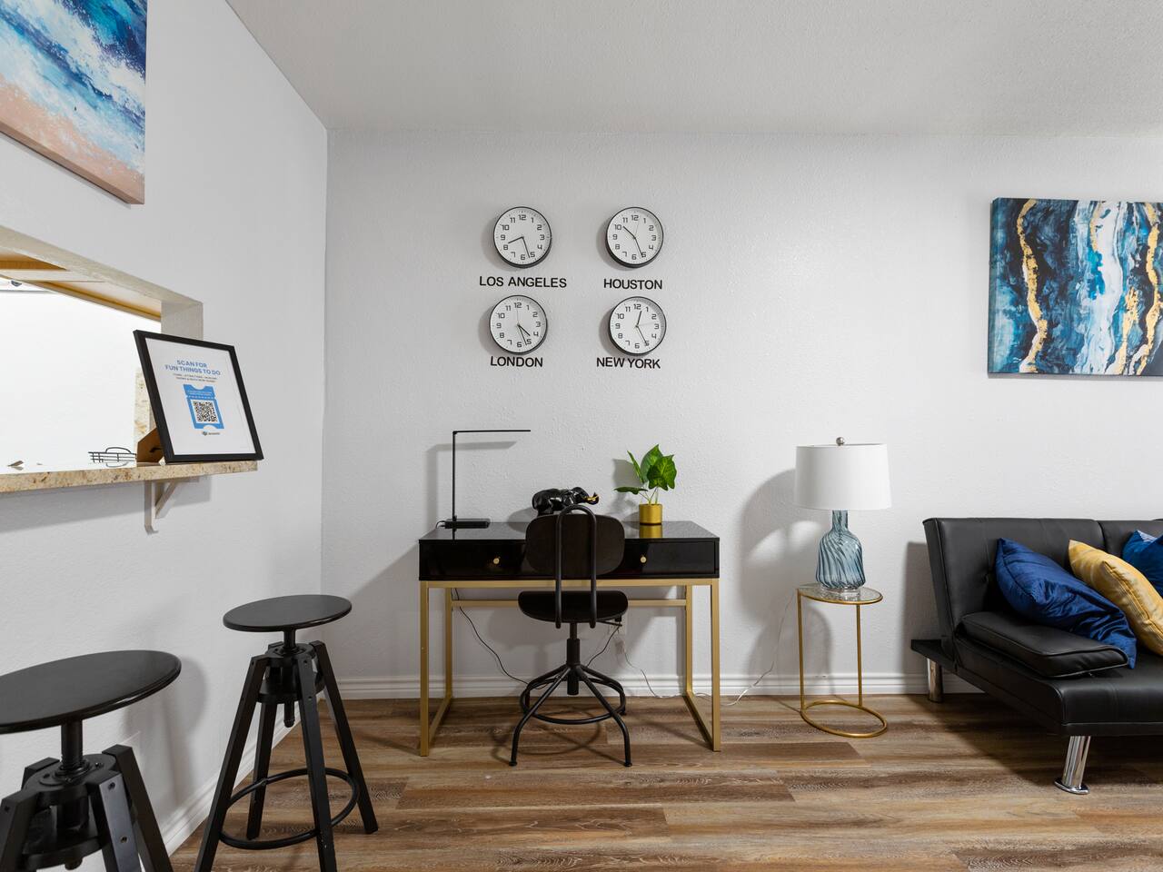 Elevate your stay with the Golden Vibes accommodation at The Escape, a sophisticated boutique hotel located in Houston. This room presents a fashionable retreat, featuring a trendy Selfie wall that's designed to create a star-like experience. Whether you're on a solo trip, traveling with a companion, or visiting for business or leisure, the Golden Vibes unit offers the perfect setting for unwinding and recharging. Work from Home! Monthly deals available